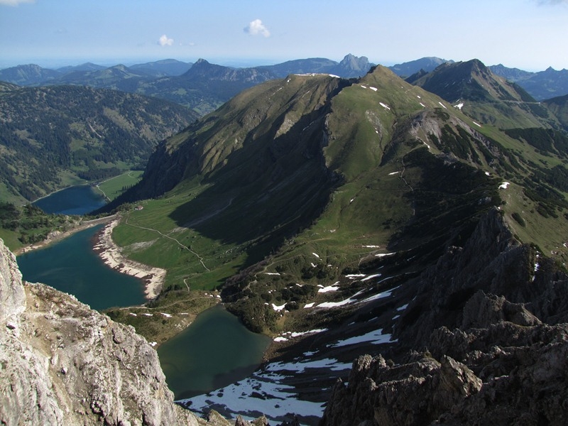 Die Lachenspitze, die ihren Namen dem kleinen See an ihrem Fuße verdankt, stellt sich mit ihrem wuchtigen Körper über der Landsberger Hütte in Pose und dominiert das Bild auch von Weitem. Vom Vilsalpsee aus beispielsweise ist das mächtige Delta der "Lache" sehr schön anzusehen. Es sind ja auch fast 300 Meter hohe Abstürze die sich einem hier entgegenstellen.