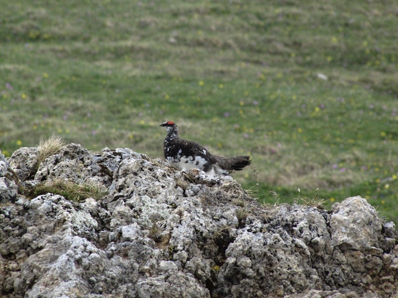 Oben angelangt sehen wir einen weiteren kleinen See, die vorhin bereits genannte Lache von der der Gipfel darüber seinen Namen bekommen hat. Nach rechts führt uns der Weg nun zur Landsberger Hütte (1.810m) und nach links geht es hinauf ins Lachenjoch. Da wir auf den Gipfel wollen steigen wir gegen das Joch auf und bewundern die satten Almwiesen die wir hier vorfinden.