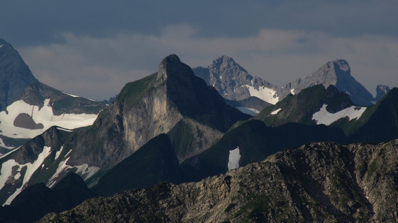 Tourenbericht von Kauk vom 10. Juli 2012Planungsgrundlage für die Tour vor zwei Tagen war eine Vorhersage, die morgens recht stabiles Wetter vorhersagte, einen Schauer am Vormittags aber nicht ausschloss und für den Nachmittag eine große Gewittergefahr angab. Also brauchte es einen flexible Tour, gut erweiterbar und schnell abzubrechen. Was liegt da näher als das Schattwalder Dreigestirn. Nun sind die Normalanstiege ja alle schon abgeklappert und man will ja nicht das Langeweile aufkommt. Deshalb entschied ich mich für einen Alternativ-Beginn, nämlich über den Stuibenkopf (1831 m). Von dem gings auf den Bschießer (2000 m) und von dort auf den Ponten (2045 m). Da oben erwischte mich dann schon vor 10 Uhr der erste Schauer und das was aus Westen kam sah nicht unbedingt motivierend aus. Deshalb der Abbruch und schnelle Abstieg ins Tal. Unten angekommen verzogen sich die Wolken um die Gipfel größtenteils.