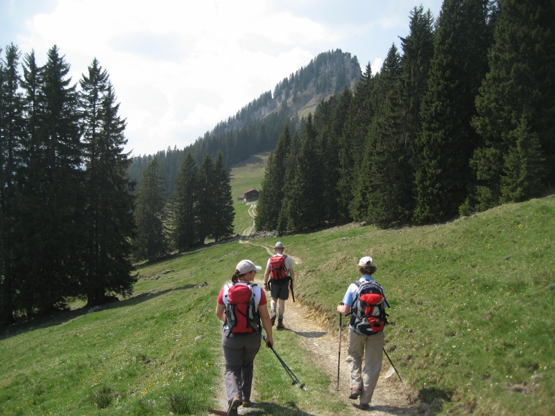 Von Grasgehren zur Schönbergalpe und dann etwas nach links hoch den Weg Richtung Besler. Nach Anstieg durch viel Wald und über Wurzelwerk durchtritt man bei einer Lücke landschaftlich schön die Besler Felsmauer und gelangt dann unterhalb von Felsen zu einer Art Joch, wo man zweifelt, ob man dort wieder in den Wald zwanzig Meter absteigen soll, da viele Wege von dem Joch abgehen: aber man soll! Dann geht es weiter, teils durch Wald, teils mit freiem Blick - der Weg führt erst westwärts, dann in einer langen Kehre wieder ostwärts - zum höchsten Punkt. Von dort schöne Aussicht. Nach der Gipfelrast geht es wieder zurück zu dem Punkt unterhalb des Joches, zu dem man abgestiegen ist und dann geht es schön südseitig am Kamm entlang zur letzten Beslererhebung, dem Schafskopf. Hier steigt man auf gutem Weg ab und kommt in den Alpbereich der Dinjörgenalpe, die knapp unterhalb der Wasserscheide Rhein-Donau liegt. Anschließend muss man wieder über einen Ausläufer des Schafskopfes aufsteigen Richtung Schönbergalpe, wo sich dann die Runde schließt. Eine landschaftlich schöne, nicht anspruchsvolle Tour - also etwas zum Genießen.