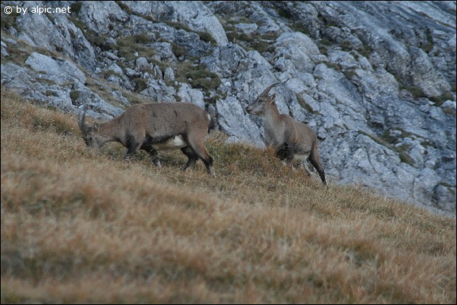 Diesen umgeht man rechts und gelangt auf die Gratschneide (Drahtseilsicherungen), welche man bis zum nächsten Grataufschwung verfolgt. Über schrofiges Gelände links des Grates bergauf und bis hin zu dem Wegweiser, welcher den vom