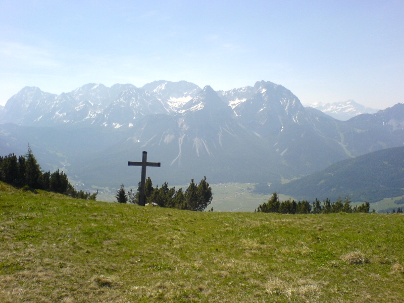 eine Kreuzaufstellung und kirchliche Einweihung statt. Die deutsche Alpenvereinssektion Garmisch hat dasselbe unter großen Kosten dort aufstellen lassen, hat auch einen Steig zur Spitze hin aushauen lassen, sodaß sie von Lermoos aus recht bequem zu besteigen ist. Gegen 30 Personen hatten sich gegen 11 Uhr vorm. auf der Danielhöhe versammelt; Frühmesser Hofer nahm die kirchliche Weihe vor und richtete an die Anwesenden ein paar herzliche Worte, wobei er das Danielkreuz schilderte als Glaubens-, als Segens- und Bundeszeichen. Der Vorstand-Stellvertreter der Sektion Garmisch brachte in begeisternden Worten den Dank zum Ausdruck für alle, welche für die Errichtung des Kreuzes beigetragen und schloß mit dem Wunsche, es möge bald nur mehr einen Alpenverein der Deutschen geben.