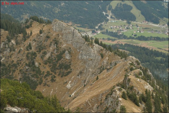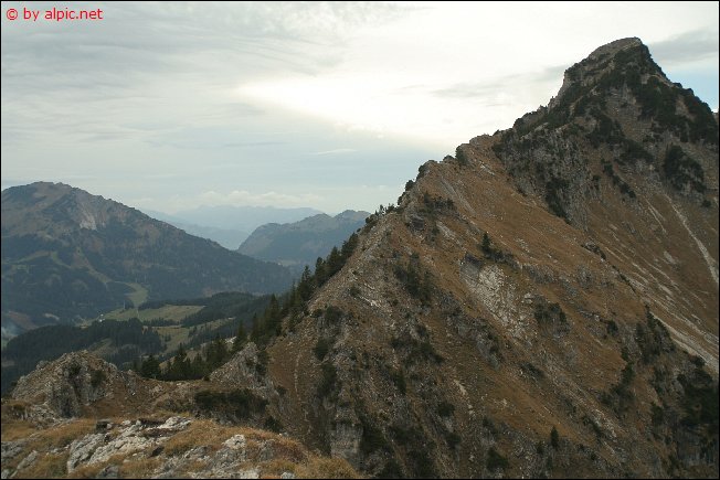 Vom Tannheimer Ortsteil Berg aus startend über Weideflächen und durch Wald empor zu einer steilen Grasflanke, die über viele Serpentinen bis an den Grat heranleitet. Nach links in einigen Minuten über teils gestufte Felsplatten (können bei Nässe recht rutschig sein!) hinauf zum Gipfelkreuz.