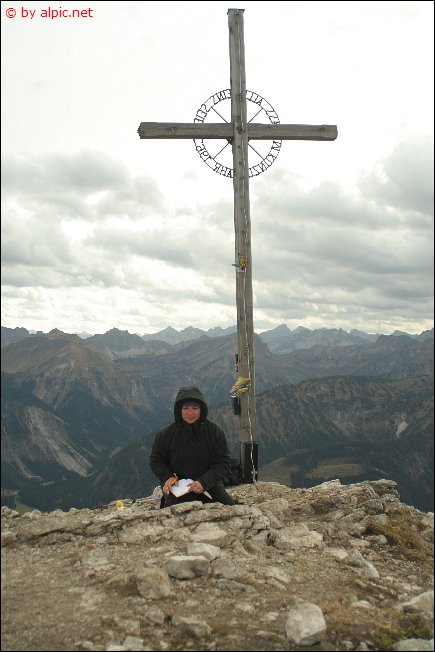 Am Gipfel begrüßt uns gleich ein stürmischer Wind und nach einer kurzgehaltenen Rast und einer umfassenden Gipfelschau verlassen wir den Gipfel wieder. Ich habe für heute noch weitere Pläne und Nadja erklärt sich bereit, allein wieder abzusteigen und mich dann später an anderer Stelle wieder aufzulesen. Ich möchte den Ostgrat in Richtung Rappenschrofen hinaus wandern und dann über die Nordflanke zur Einsteinhütte und im weiteren Verlauf zur alten Grenzstation in der Enge absteigen.