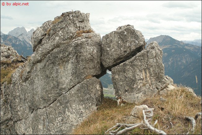 Gesagt, getan... über den teils ausgesetzten Grat marschiere ich in östliche Richtung und komme gut voran, einzig der oft recht kräftig kalte Wind lässt einem hin und wieder einen Schauer über den Rücken laufen. Der Gratmarsch selbst ist für einen erfahrenen Bergwanderer problemlos zu meistern. Schon von der Höhe des Grates lässt sich tief unten im Almkessel eine Gasse durch die Latschen ausmachen, es empfiehlt sich diese Gasse genau einzuprägen, um später ohne Probleme zur Einsteinhütte hinunuter zu gelangen.