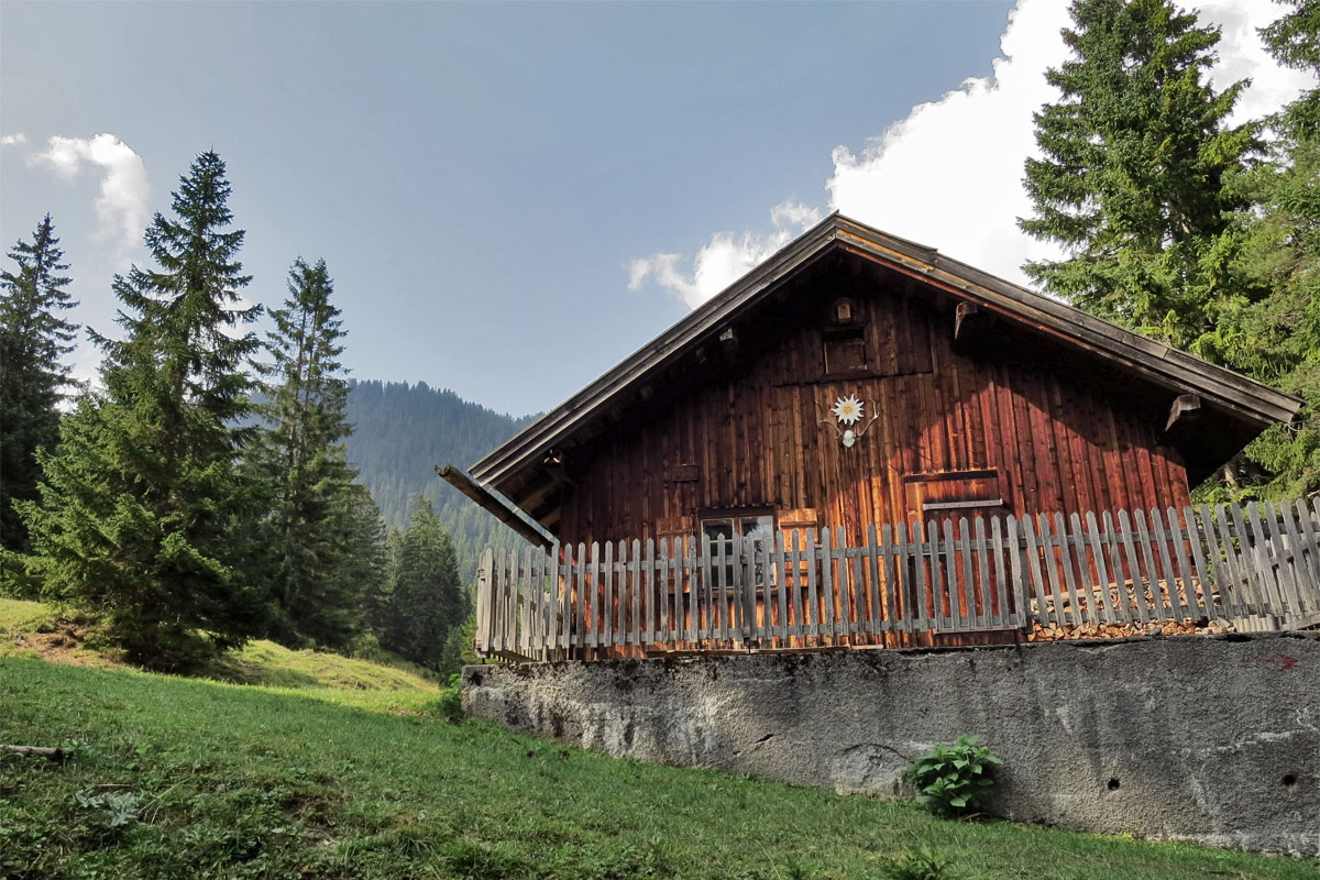 Melk(alpe, 1205m). Ab dort abermals kurzzeitig auf einem geschotterten Alpweg zum Beginn des
