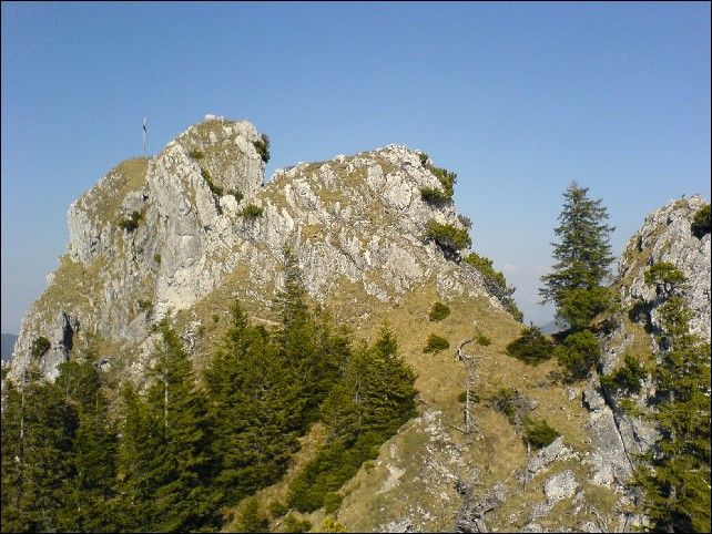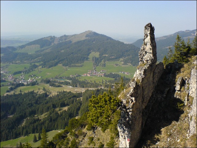 Faszinierend an diesem Gipfelstock sind vor allem die vielen hoch aufragenden und teils bizarr geformte Zacken und Türme, die den ganzen Gratkamm schmücken. Immer wieder wachsen kleine, verkrüppelte Fichten an den Steilhängen und wirken so richtig urig. Ebenso der Ausblick in das Allgäuer Alpenvorland, wie auch zu den Tannheimer Bergen und den Allgäuer Alpen, ist sehr reizvoll. Weit im Süden sind die Gipfel des