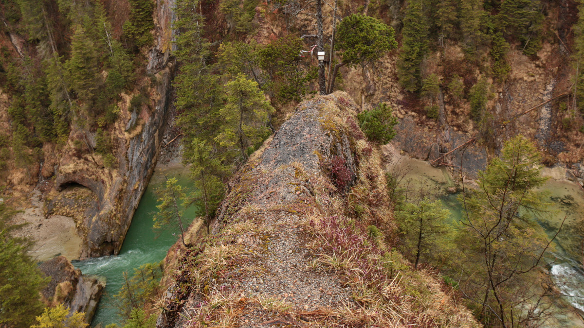 der Ammerdurchbruch von oben - wer zu dem Briefkasten hinaus möchte sollte über eine ordentliche Portion Schwindelfreiheit verfügen