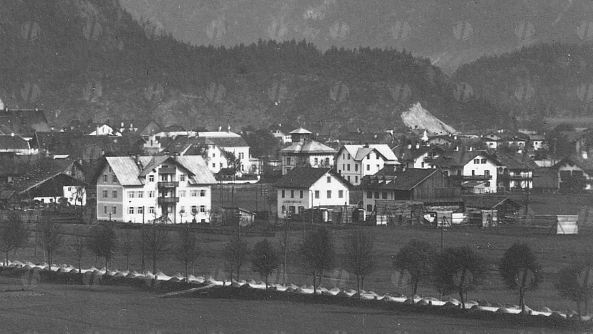 Detailansicht - Kaiser-Lothar-Straße (so hieß sie zum Zeitpunkt der Fotoaufnahme allerdings noch nicht) und der neu erbaute Schießstand des Jahres 1923 - Foto: Richard Müller - handschriftlich 7. Aug. 1923