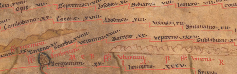 Auszug aus der Tabula Peutingeriana mit einem Abschnitt der Via Raetia