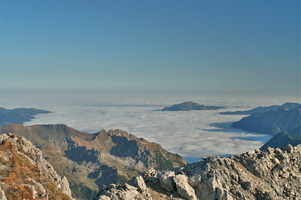 Gipfelblick vom Biberkopf auf das Nebelmeer über dem Illertal