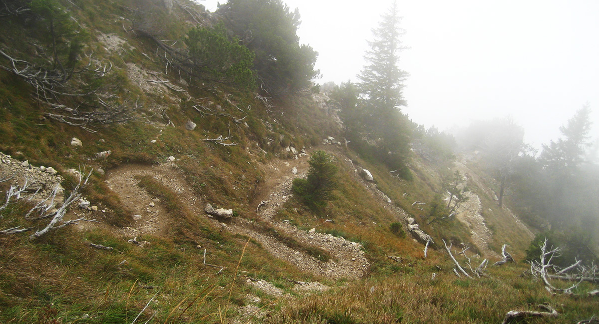 idyllisch schlängelt sich der Steig von Tannheim (Berg) kommend über die Südflanke hinauf zum Einstein