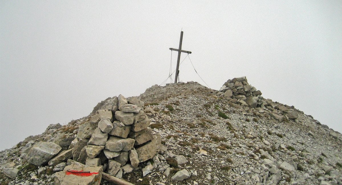 der Gipfel der Ellbogner Spitze ist erreicht, allerdings lässt die Sicht eindeutig zu wünschen übrig