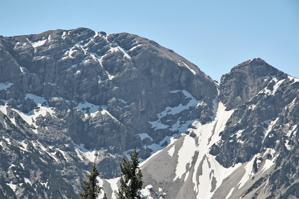 Blick auf die Nordflanke des westlichen Geierkopfes und das Ammerwaldloch (rechts im Bild)