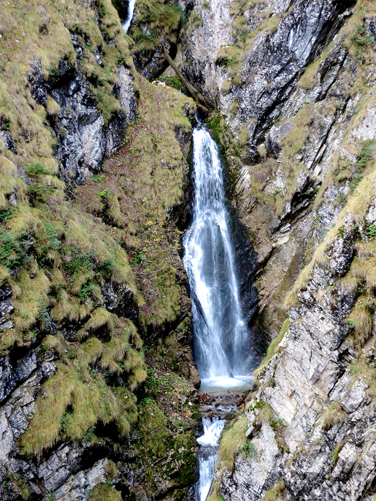 in mehreren Stufen fällt der Reichenbach im inneren der Klamm durch den enorm steilen Tobel als Wasserfall in die Tiefe