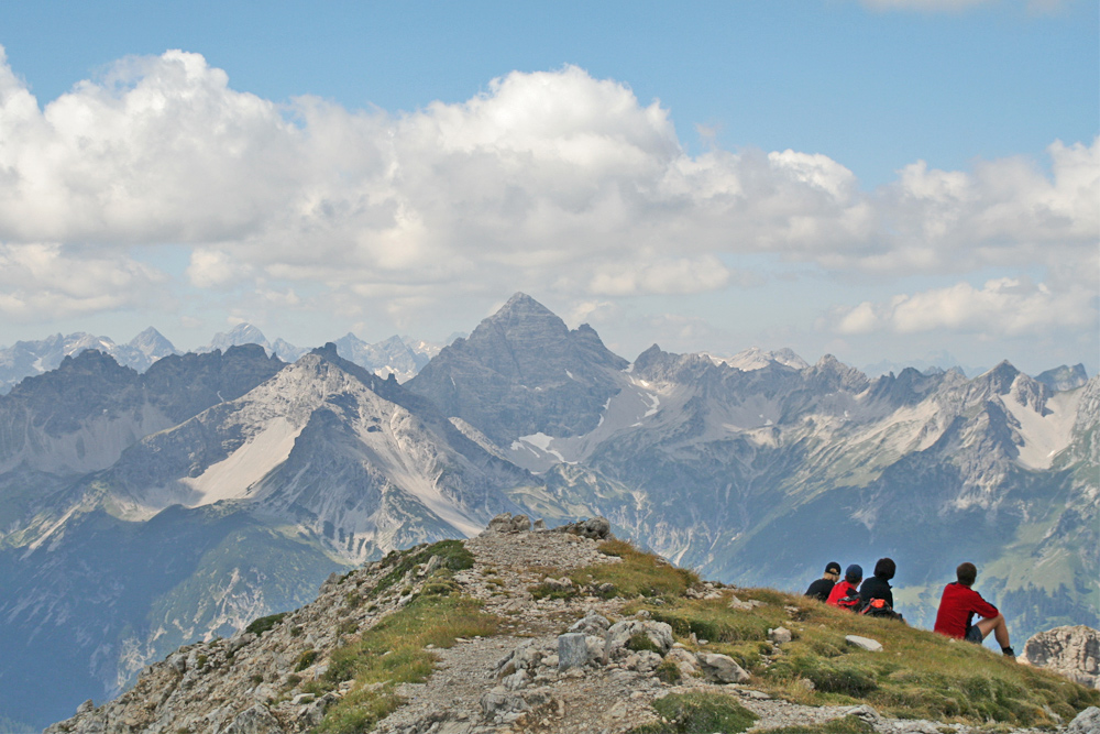 Gipfelblick von der Lailachspitze hinüber zum Hochvogel, welcher stets die Blicke auf sich zu ziehen vermag