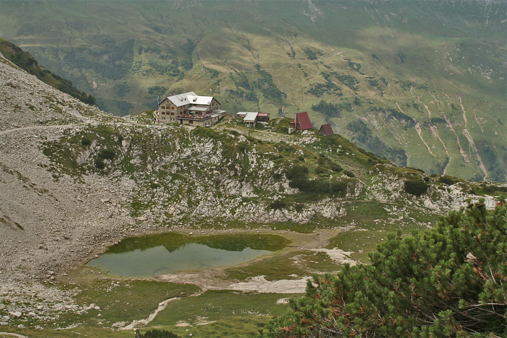 das Prinz-Luitpold-Haus über dem kleinen See im Obertal