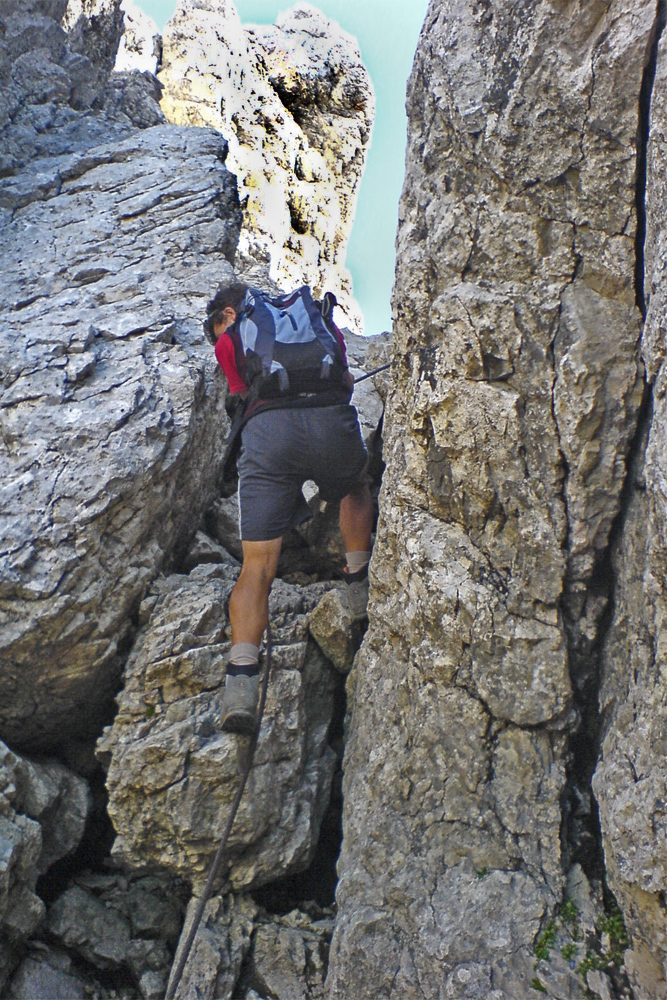 Schlüsselwörter: steinschlaggefahr köllenspitze schlüsselstelle klemmblock gipfelrinne stahlseil eisentritt