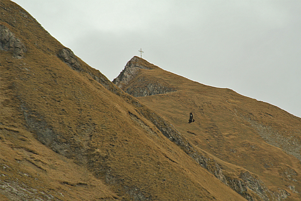 ein Adler dreht seine Runden vor der Südwestflanke der Rotschrofenspitze