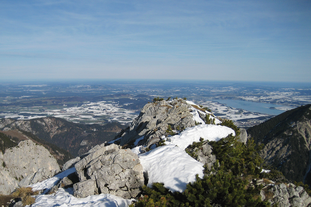 von der Sefenspitze schweift der Blick gegen Norden über die Füssener Seenplatte im Ostallgäuer Alpenvorland