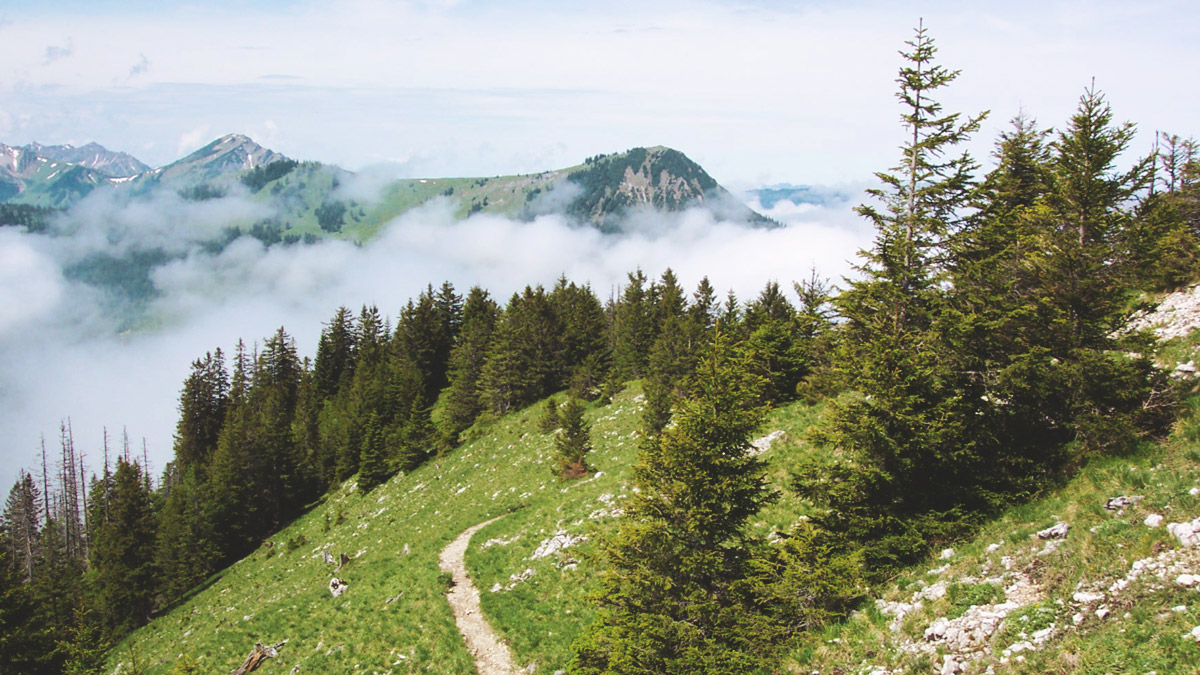 der wolkenumzogene Schönkahler vom Breitenberg-Westgrat aus gesehen