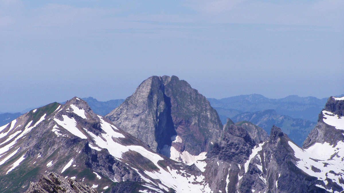 Gipfelblick von der Bretterspitze gegen Nordwest hin zu der Höfats und dem Roten Loch