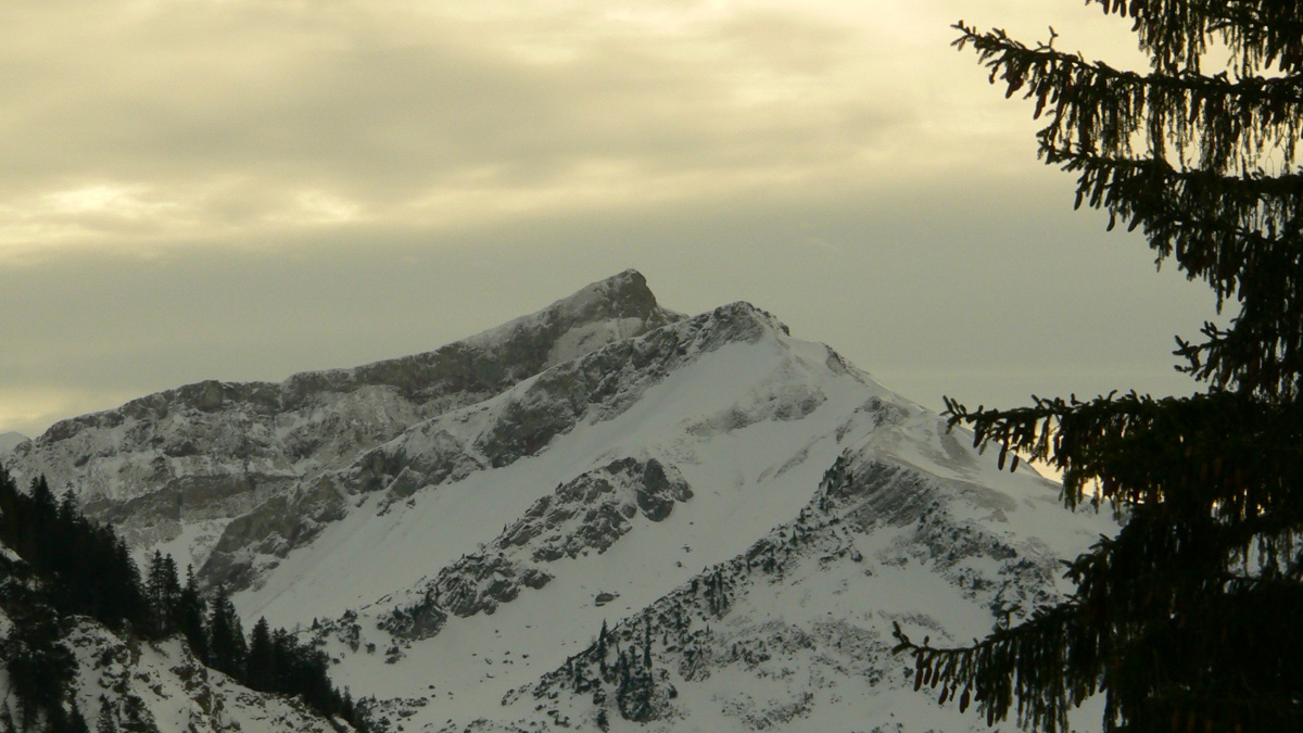 ein langgestreckter Grat steigt zum Gipfel der Roten Spitze an, davor erhebt sich deren kleiner Bruder das Geierköpfle