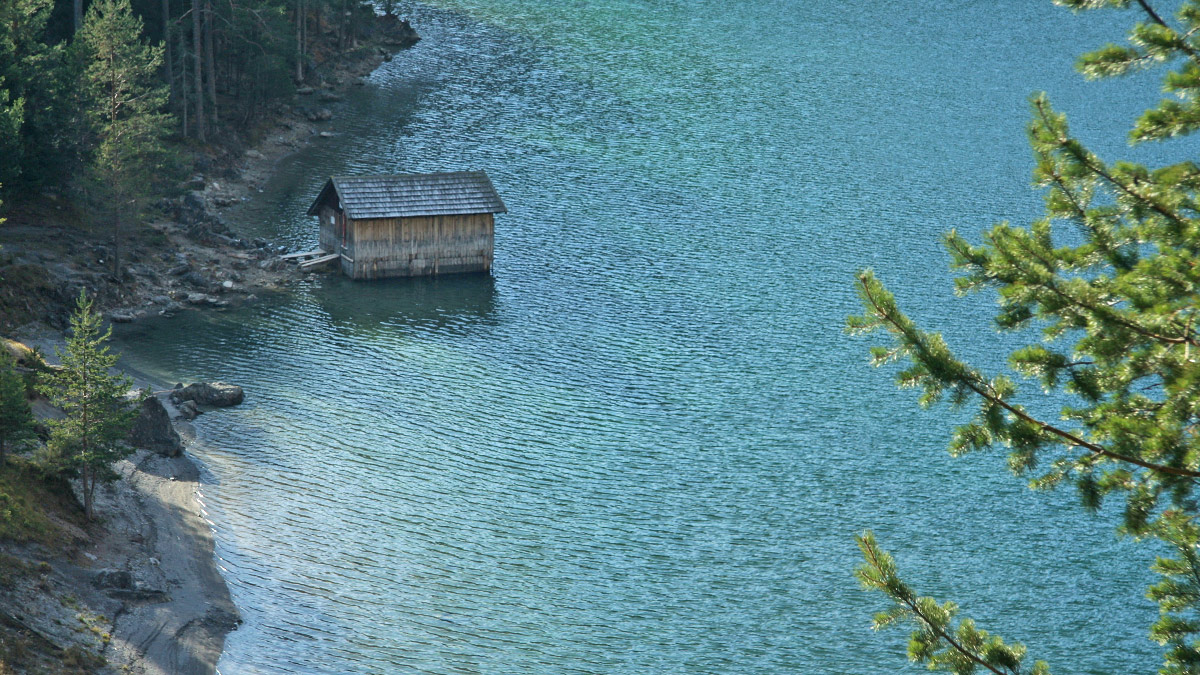 diese kleine Hütte findet man am Ufer des Blindsees am Fernpass