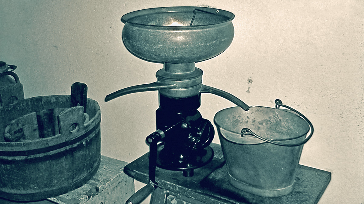 eine Milchzentrifuge wie man sie früher häufig auf Bauernhöfen verwendete, sie dient zum Trennen von dem schwereren Rahm und der leichteren Magermilch - die Magermilch diente meist zum Tränken der Kälber oder zur Mast der Schweine, aus dem Rahm wurde mit einem sogenannten Rührkübel Butter gemacht