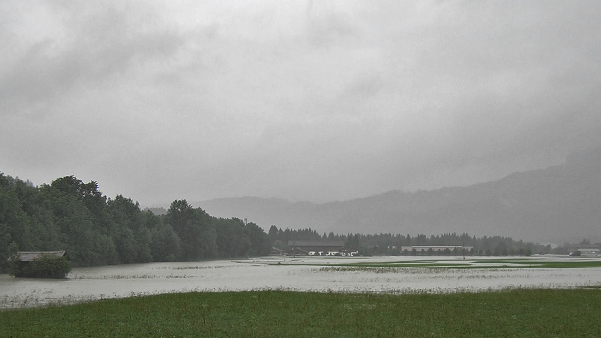 der Lech erweitert seinen Einfluss auf die etwa im Mittelalter übliche Ausdehnung - die dem Lech einst abgerungenen Flächen der Reuttener Unterlüß mitsamt dem Reiterhof holt sich der Wildfluss für einige Zeit zurück