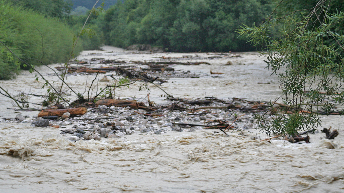 auch ansonsten kleine und unscheinbare Bachläufe wie hier bei Musau werden bei teils über 250 l/m² Niederschlagsmenge zu reißenden Fluten