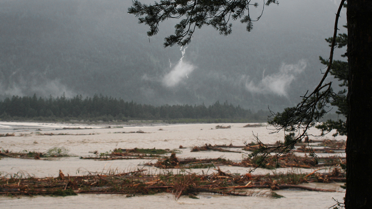 der Lech transportierte über weite Teile tausende Festmeter an Treib- und Schadholz flußabwärts