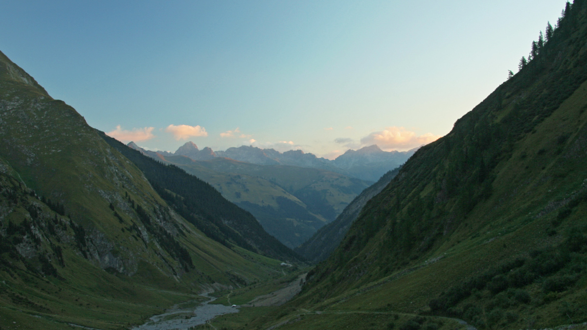 frühmorgendlicher Ausblick aus dem Sulzltal zu den gegenüberliegenden Allgäuer Alpen