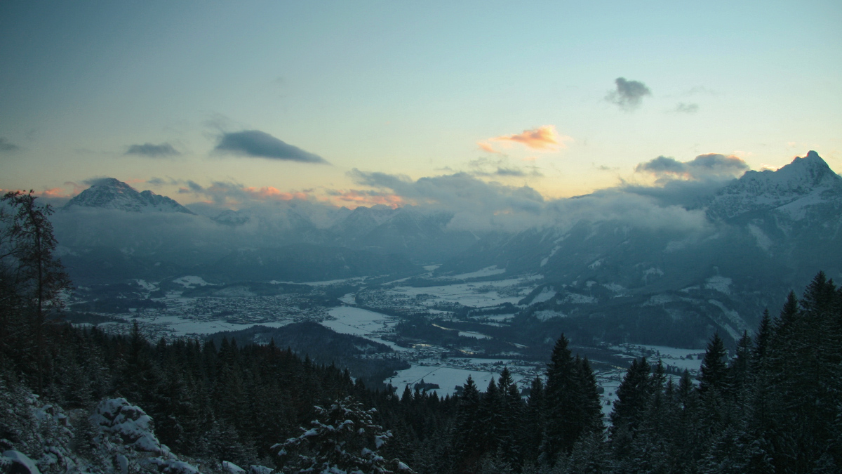 Ausblick hinab in den frühwinterlichen Talkessel von Reutte