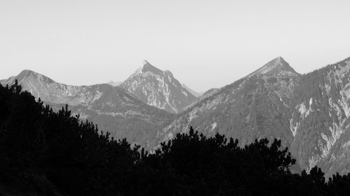 Ausblick zu (v.l.) Ochsenälpeleskopf, Säuling und dem Hohen Straußberg