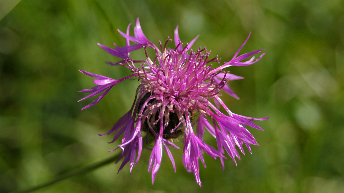 die Einköpfige Flockenblume (Centaurea uniflora) kommt im Waldgürtel am Fuße des Berges recht häufig vor