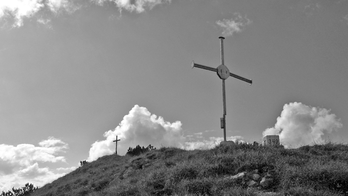 am Gipfel des Ochsenälpeleskopf laden zwei Gipfelkreuze zum Rasten ein