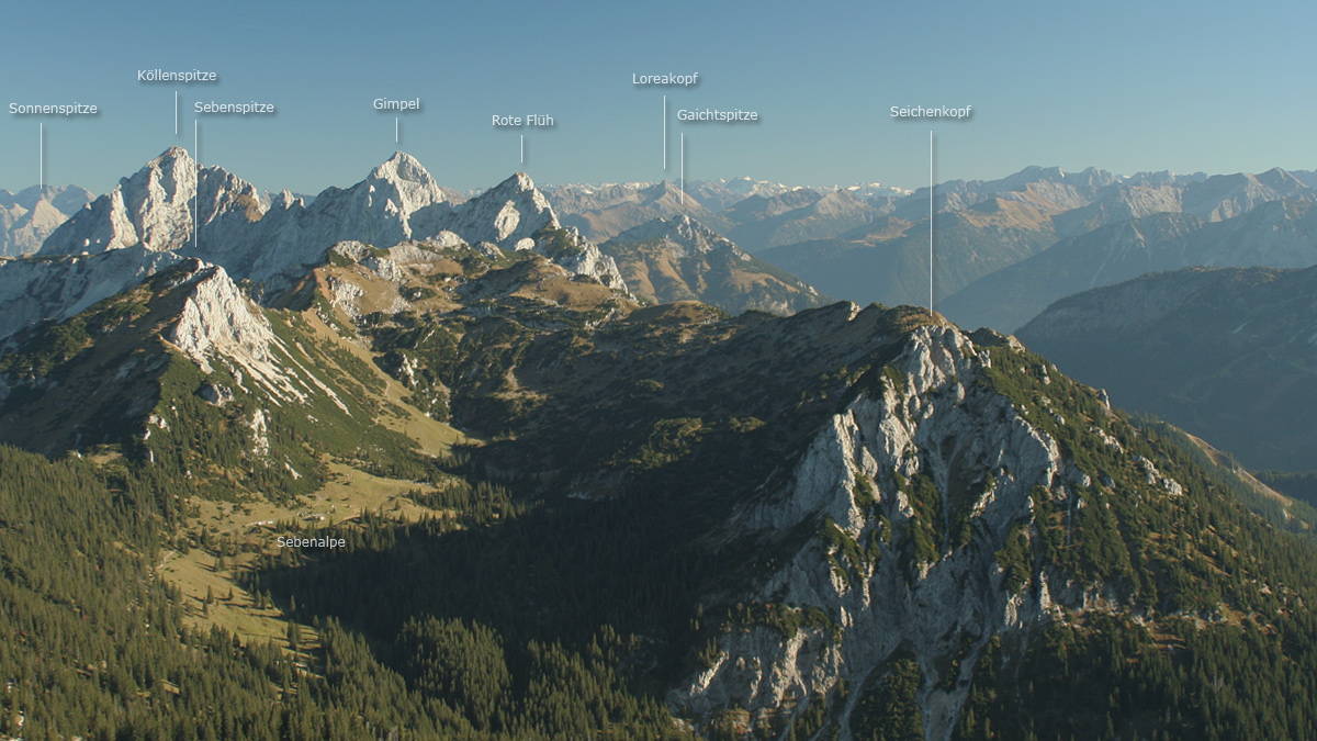 Schlüsselwörter: panorama tannheimer berge gaichtspitze seichenkopf köllenspitze sebenspitze gimpel rote flüh