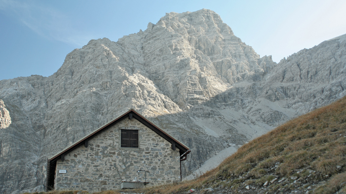 das Kaufbeurer Haus mit seinem "Haus"-Berg, der Urbeleskarspitze