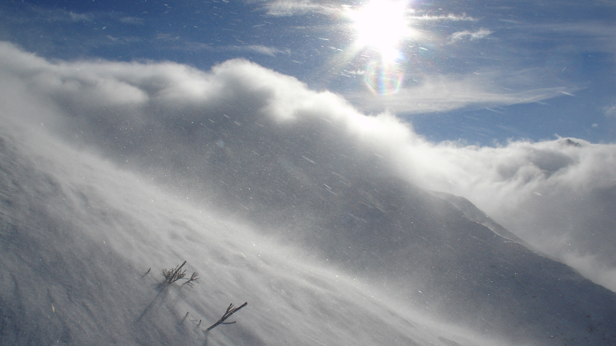 wie in einem Gebläse fühlt man sich, der Naturgewalt des Windes ausgesetzt welcher unaufhörlich kleine Eiskristalle über die Schneeflächen treibt um sie in der windabgewandten Seite als Wechte wieder aufzutürmen