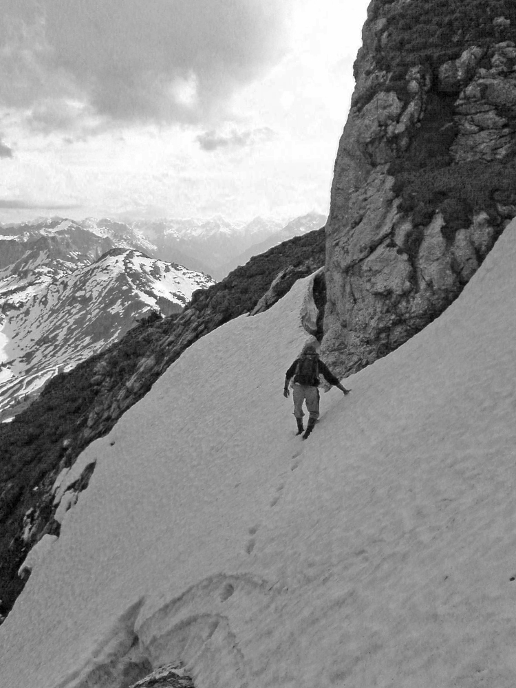 Wegrutschen verboten! - das Queren von steilen Schneefeldern erfordert konzentriertes Steigen