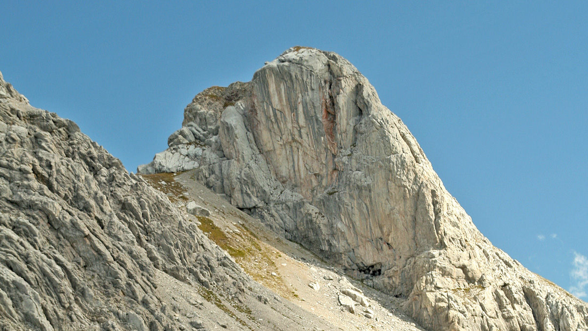 der nördliche Ausläufer des Strahlkopfes fällt jäh zum Karjoch ab