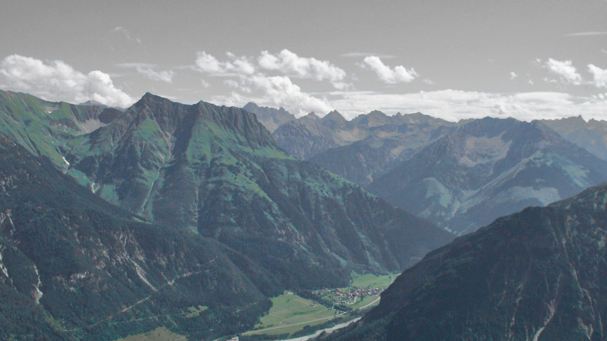 ein Musterbeispiel an Lechtaler Formenvielfalt - die beiden Steilgrasberge Pfeilspitze und Rotwand über Elmen