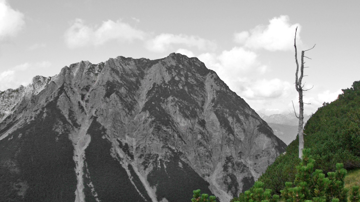 die Westflanke der Saldeiner Spitze - die ausgeprägte Rinne im linken Bilddrittel kann für einen optionalen Anstieg genutzt werden