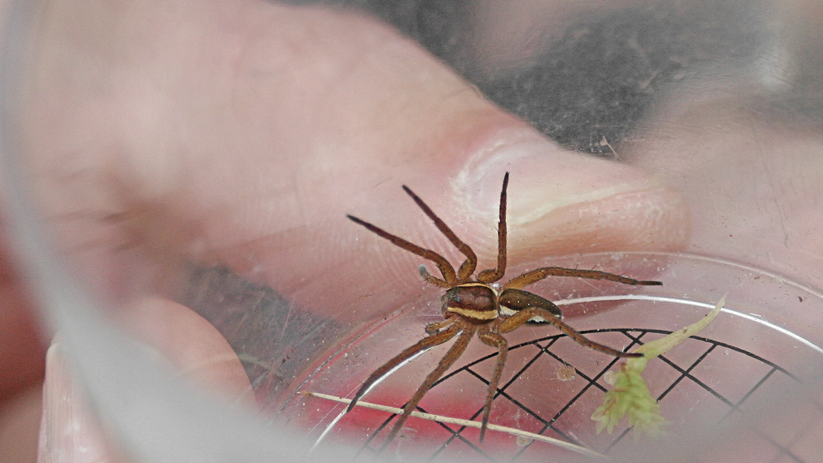 die Gerandete Jagdspinne (Dolomedes fimbriatus) wird manchmal auch als Listspinne bezeichnet und ist ein typischer Vertreter in Hochmooren und Feuchtwiesen