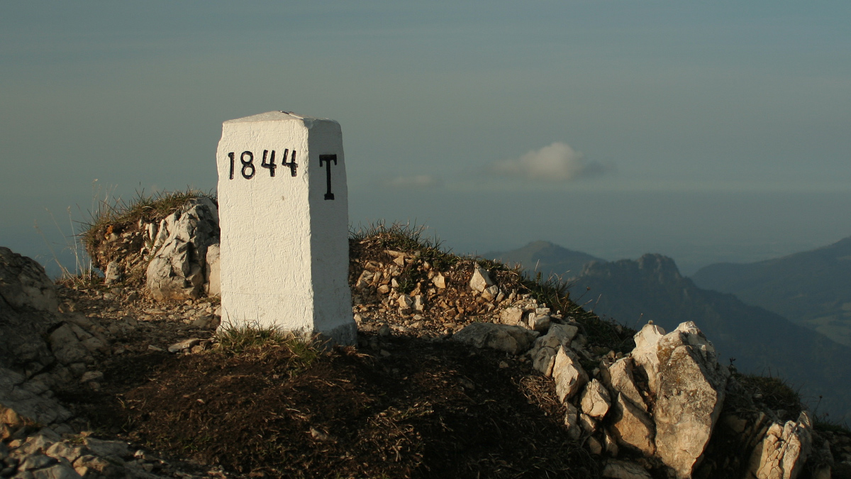Grenzstein von 1844 am Wannenjoch (Kühgund)