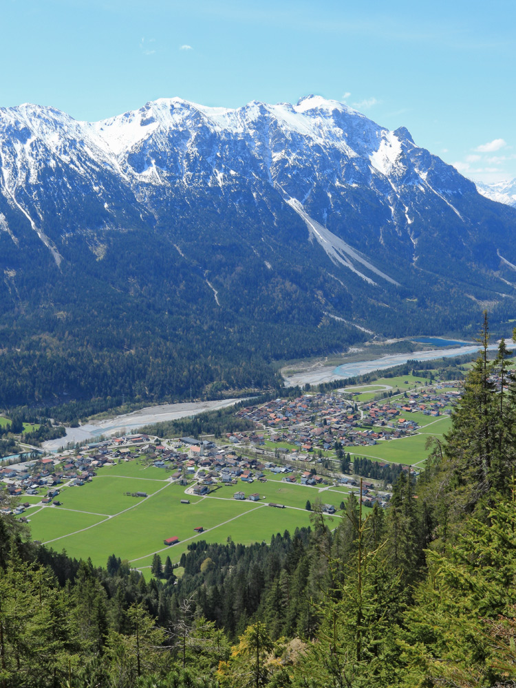 Blick auf Weißenbach am Lech - darüber der Schartenberg und die Schwarzhanskarspitze