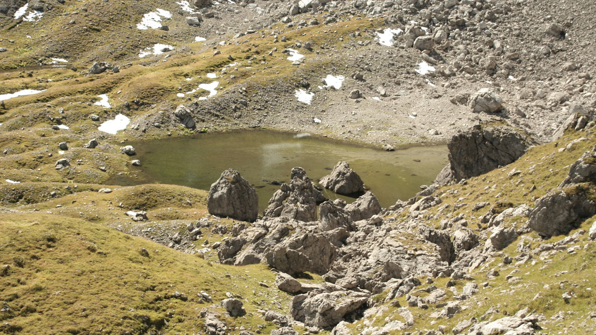 der kleine Mintschesee im nordöstlich eingelagerten Leiterspitzkar