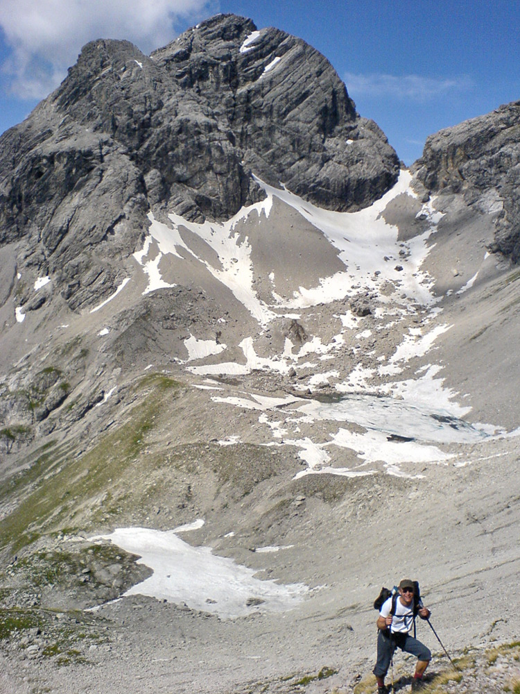 auf dem Weg in die Spiehlerscharte - im Hintergrund das Hermannskar mit dem gleichnamigen See und darüber der Große Krottenkopf
