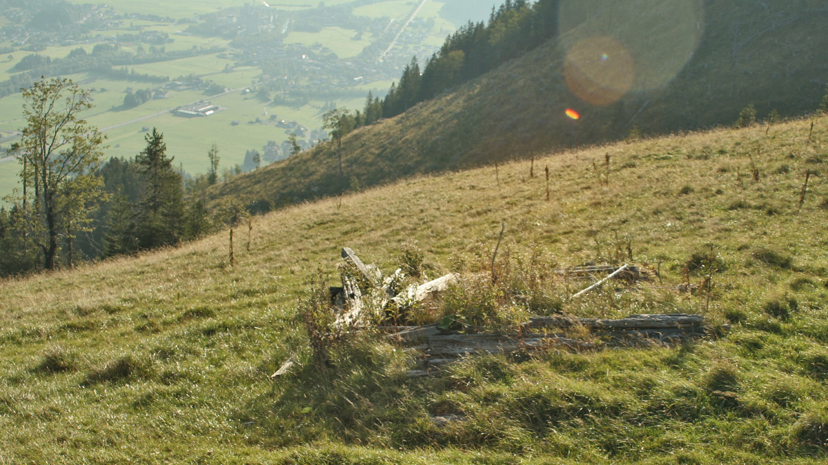 was von der Roter-Stein-Alpe übrig geblieben ist - im Hintergrund das kleine Städtchen Vils